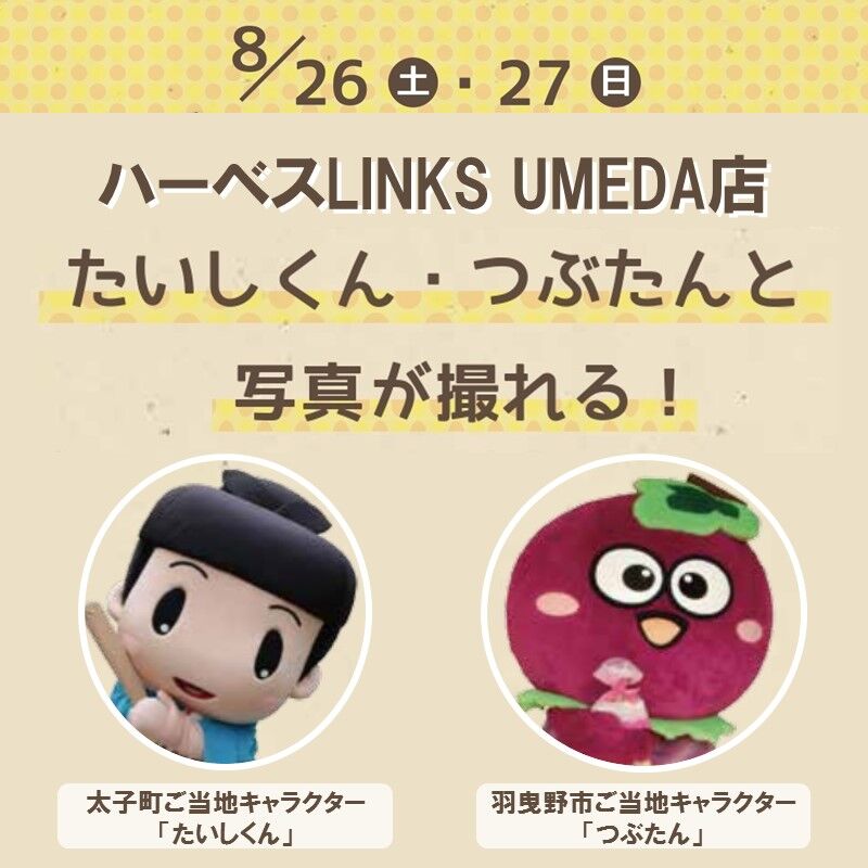 今週の土日にリンクス梅田にあるスーパー「ハーベスLINKS UMEDA店」に羽曳野市と太子町のご当地キャラクターが遊びにくるみたいです!