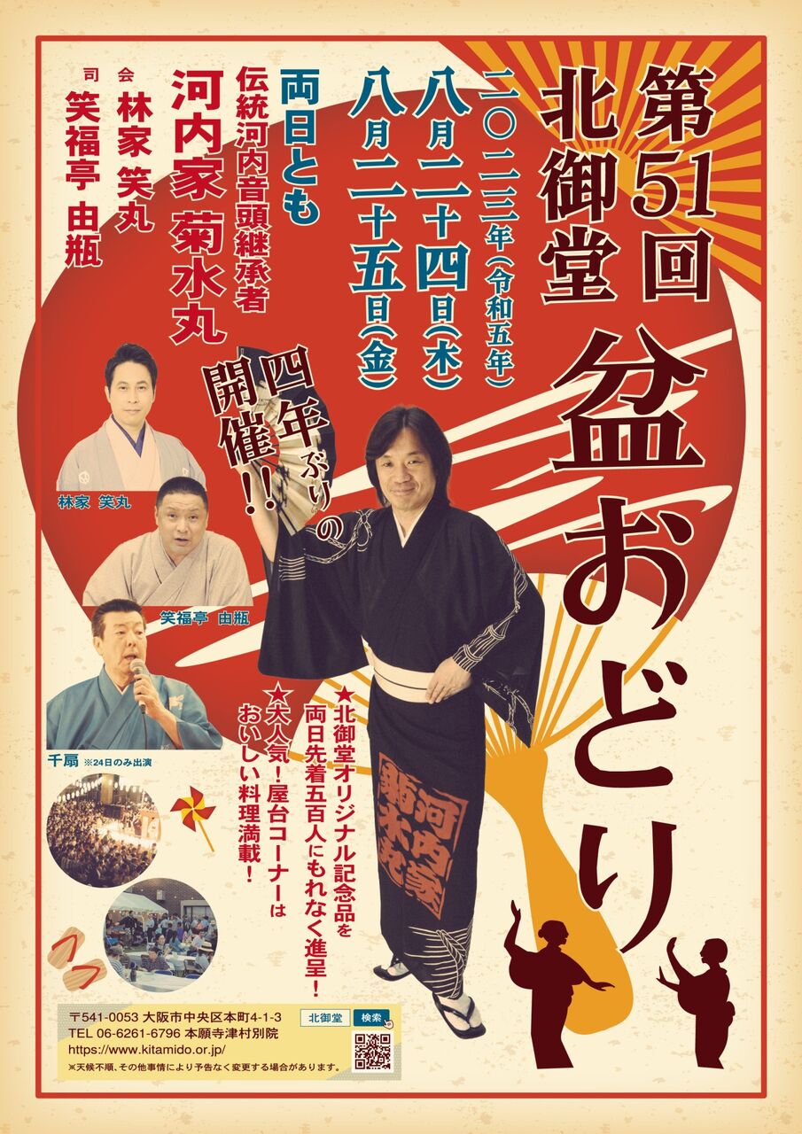 本日から2日間、中央区・本町にある北御堂で『第51回北御堂盆おどり』が開催されます🏮