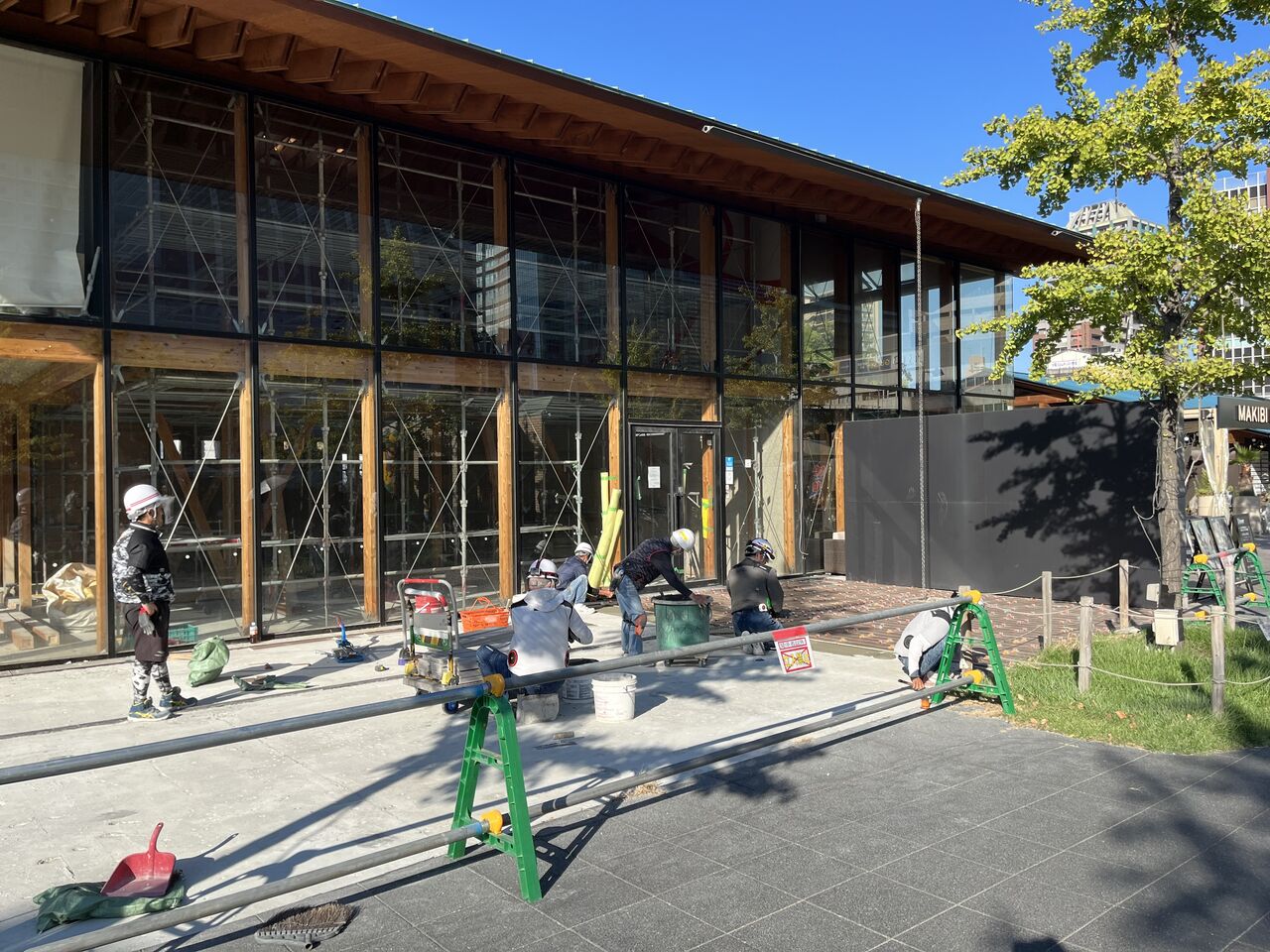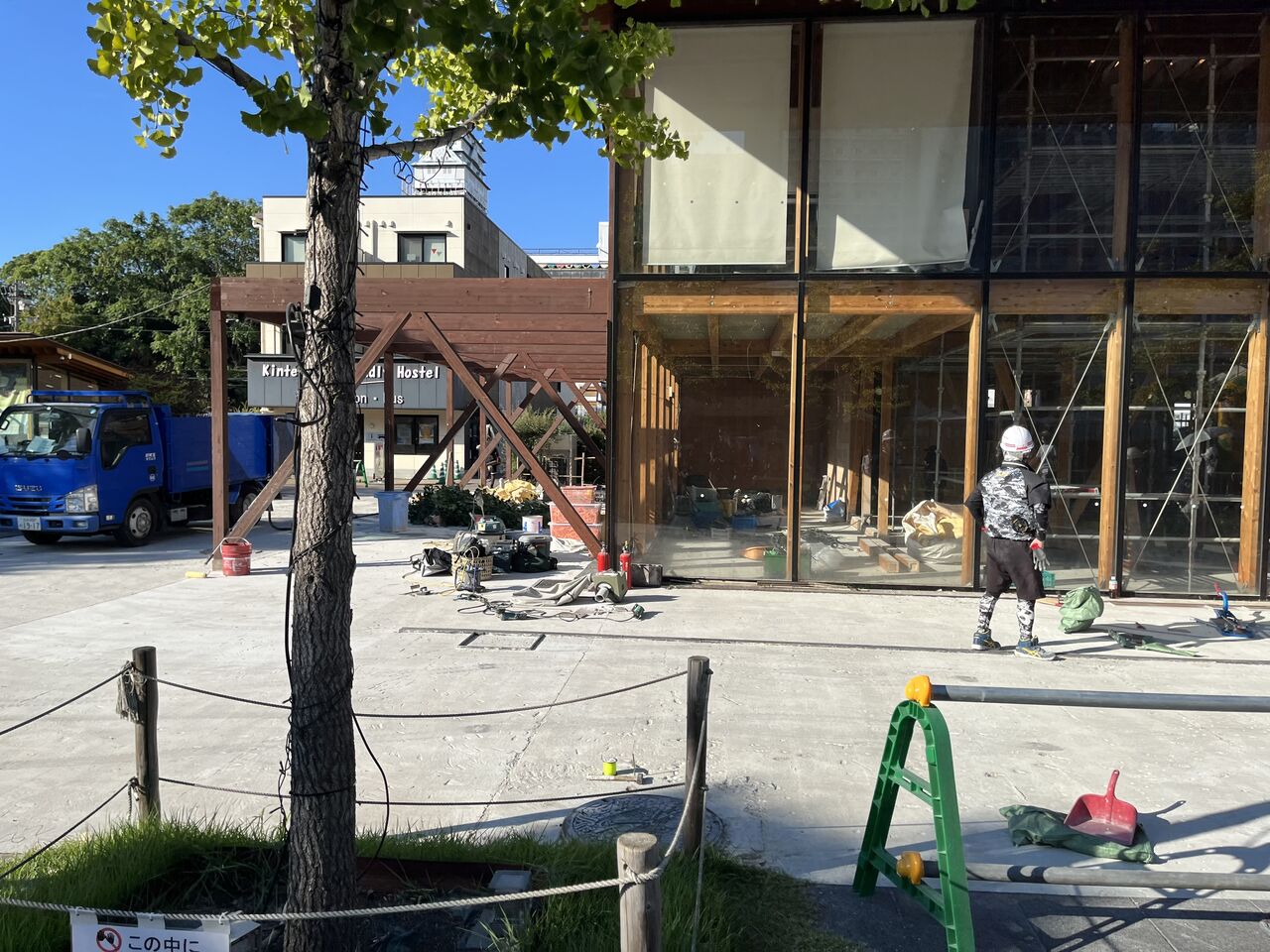 何やら工事が始まっていて、元々あった看板はもちろんテラス席なども撤去されていました。
