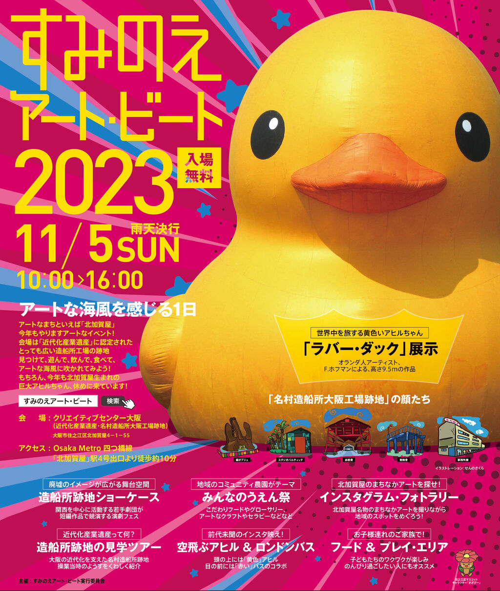 あの巨大アヒルがイベントの顔の「すみのえアート・ビート2023」が2023年11月5日(日)に開催することになりました。