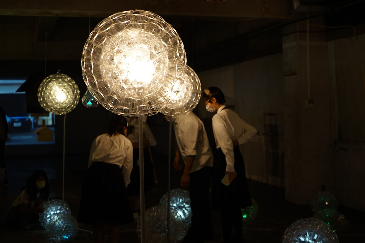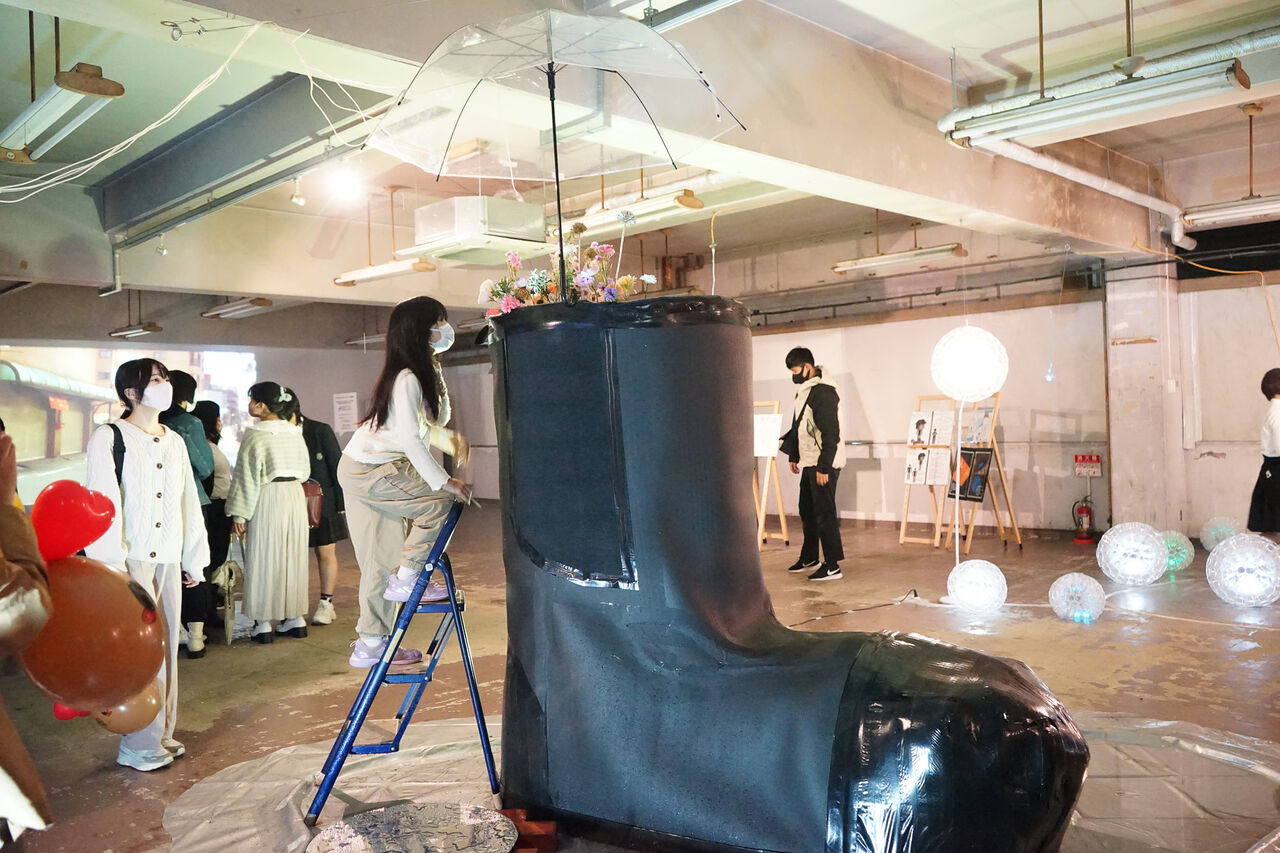 住之江区にある大阪府立港南造形高校の生徒さん達が企画制作したアート作品は会場の空間を生かした体験型アートになっています。