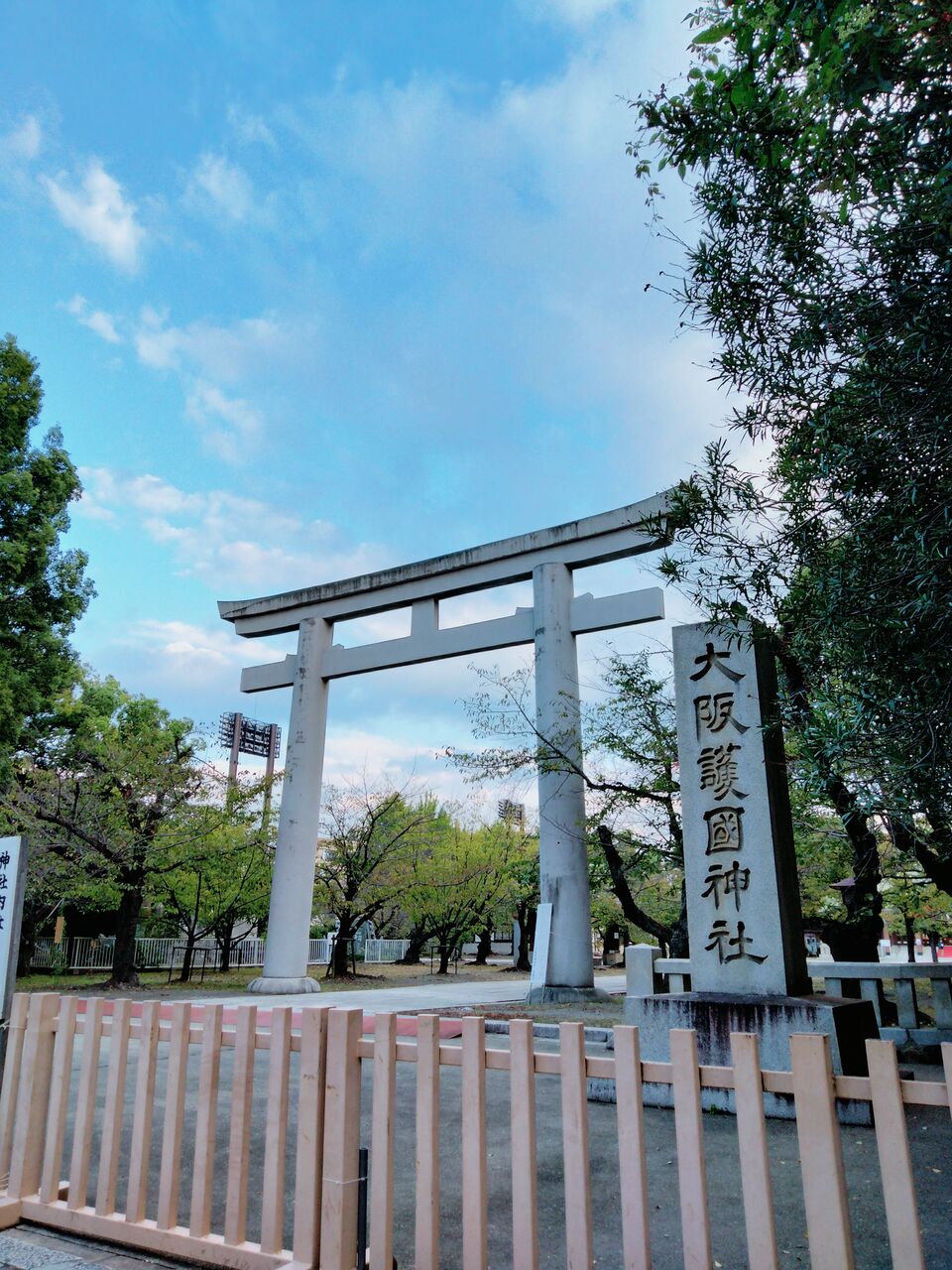 公園の一角には、大阪護国神社が隣接しており、神聖な雰囲気を味わうことができます。