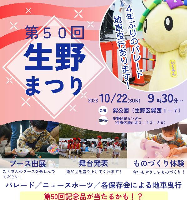 2023年10月22日(日)に生野区・巽公園にて『第50回 生野まつり』が開催されます。