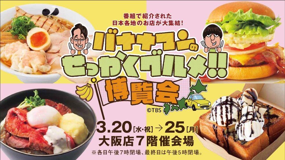 毎週日曜の19:00から放送されている人気グルメバラエティ番組「バナナマンのせっかくグルメ!!」のイベントが大阪高島屋(難波)で開催されています。