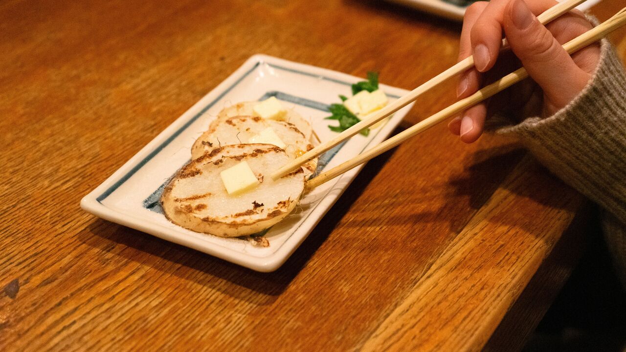 「山芋の野焼き」はバターと塩で味付けしてもらってパクリ♡