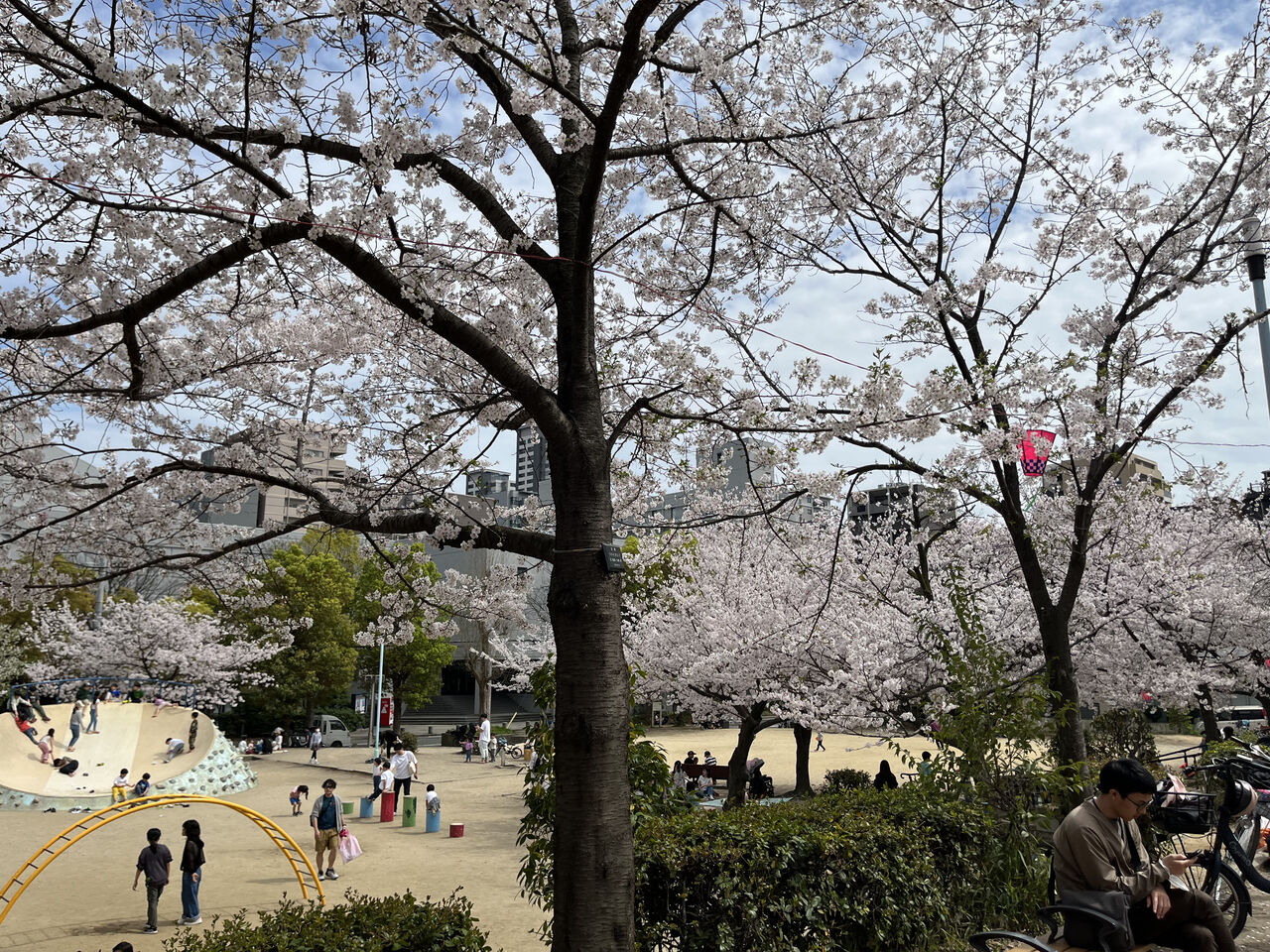 レジャーシートを敷いて持ち込みで花見をする方やベンチに座ってお弁当を食べる方など、幅広い年齢層の方がいましたが人の多さも丁度良くて花見するには穴場スポットでした☺️
