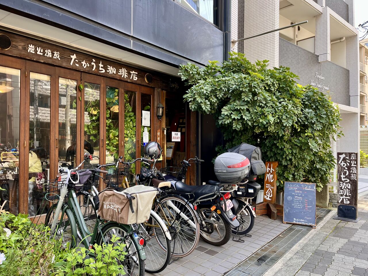 緑の生い茂るたかうち珈琲店に到着しました。