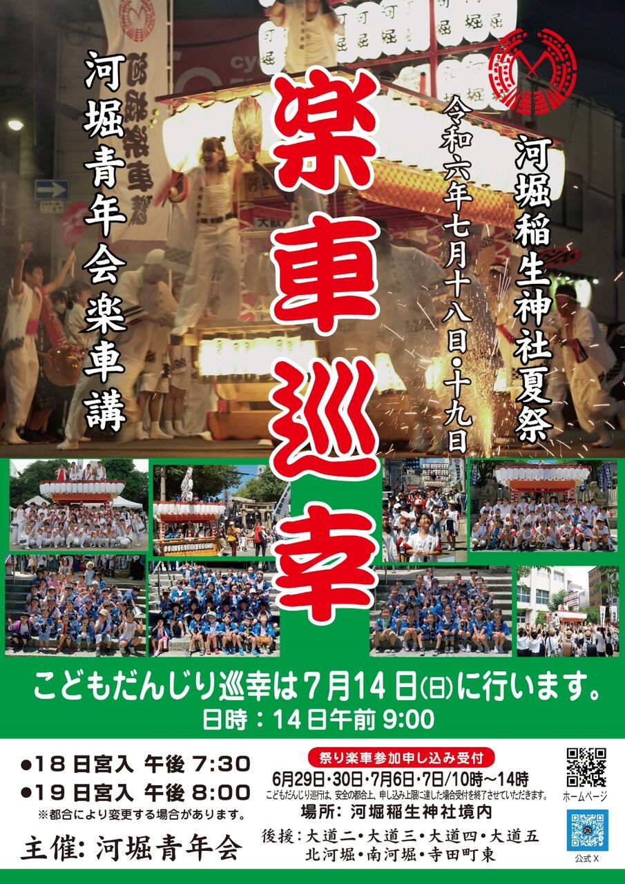 7月18日と19日に開催される河堀稲生神社夏季大祭は、今年もだんじりを中心ににぎわうことが予想されます。