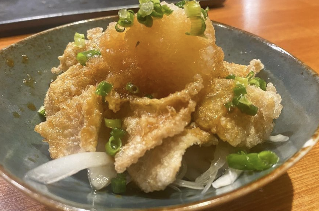 パリパリ鶏皮ポン酢(380円)。
