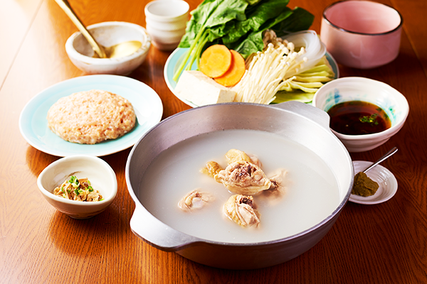 名物博多の水たきはしっかりとした味わいで、博多名物の明太子も楽しめる。