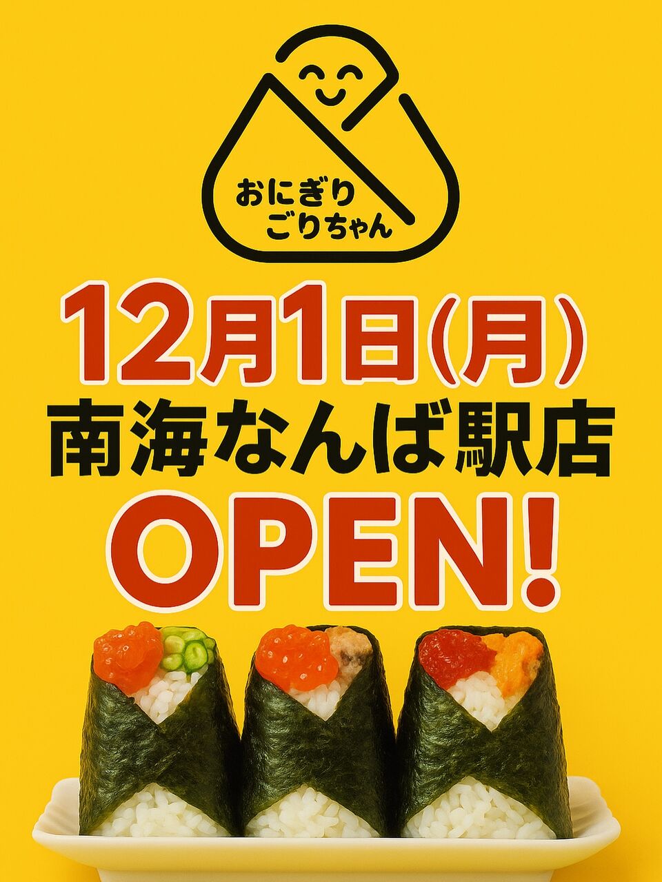 南海なんば駅 3F北改札内に「おにぎりごりちゃん 南海なんば駅店」が12月1日にオープン!