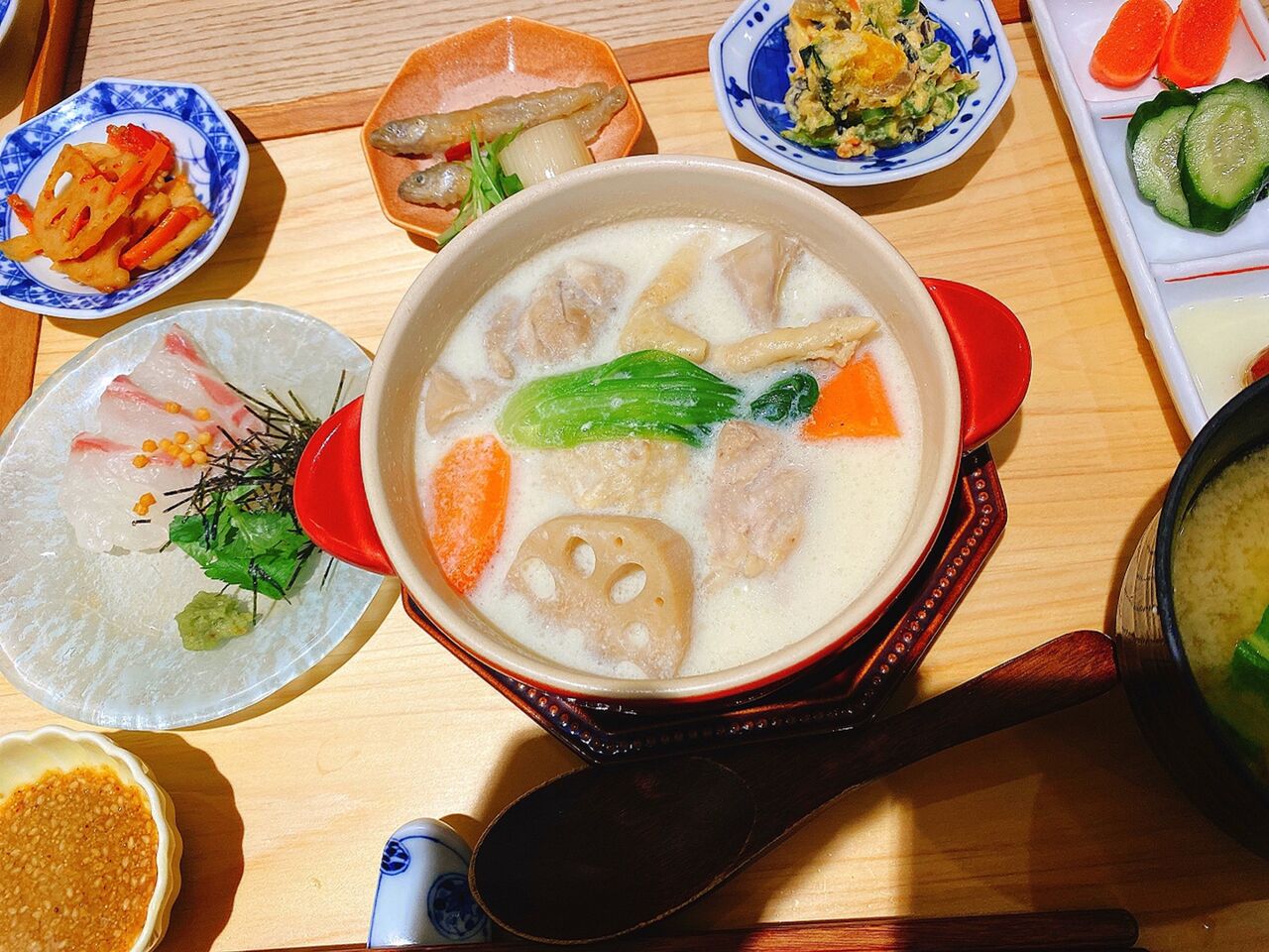 おかずは3種類の中(鮭と彩り野菜のちゃんちゃん焼き風、和風ハンバーグのせいろ蒸し ~特製ごまだれ~、ゴロゴロ野菜と鶏肉の豆乳味噌クリーム煮)から選べて、私は鮭と彩り野菜のちゃんちゃん焼き風を一緒に来ていた友人はゴロゴロ野菜と鶏肉の豆乳味噌クリーム煮を頼むことにしました。