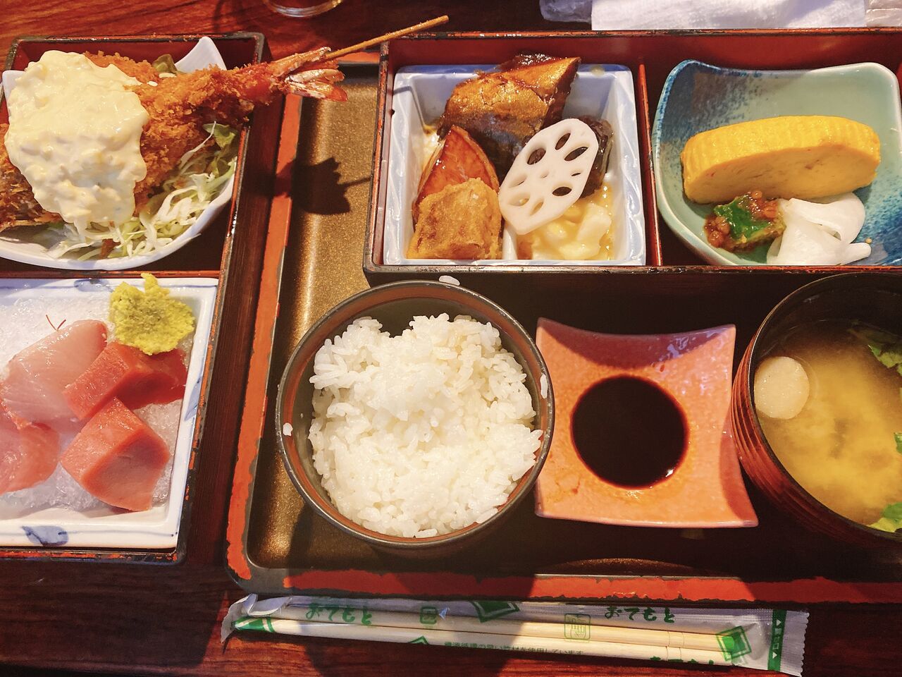 この金額でこの大きさの海老フライに串カツ、さらにはお造りまで...お得すぎる。。
