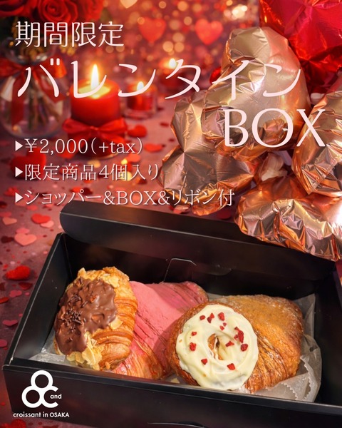 【バレンタインクロワッサン】梅田にある人気クロワッサン専門店「and大阪店」で2月限定のバレンタインスイーツが登場🥐💝