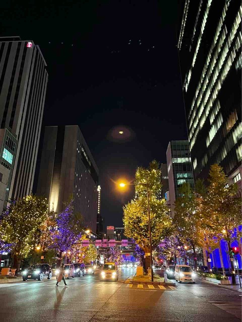 NU茶屋町とNU茶屋町プラスの間の道がライトアップされていた!イルミネーションを見て冬を感じる
