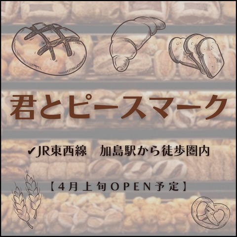【開店予告】JR加島駅から徒歩1分圏内に新しくパン屋が出来るらしい!「君とピースマーク」が4月上旬に新規オープン